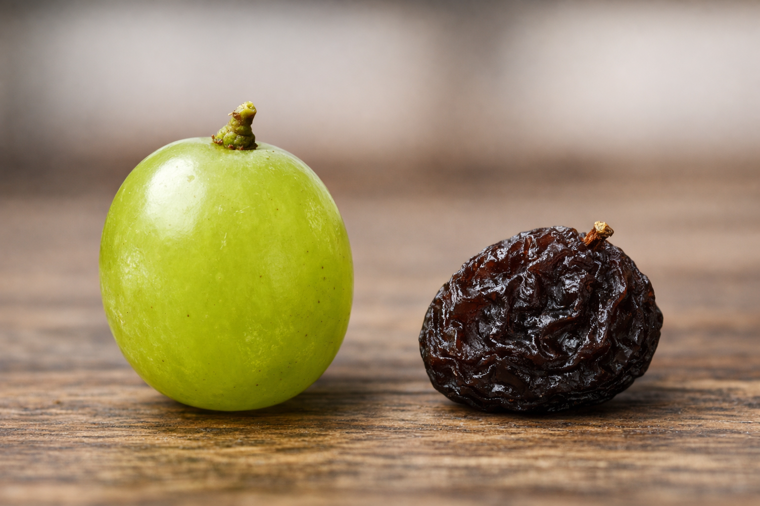 A simple way to picture this is the difference between a grape and a raisin. Same grape. One hydrated, one not. That’s essentially what dehydration does to your cells.